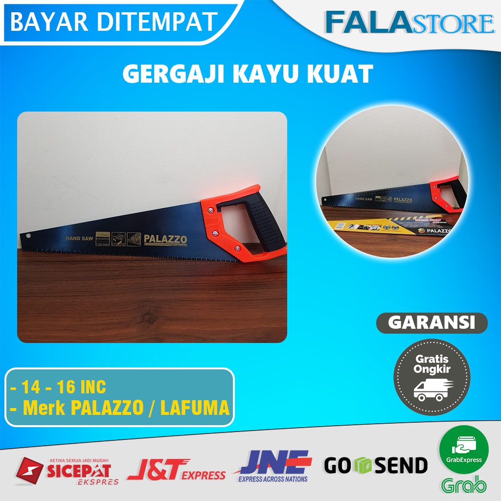 Selamat datang di Falastore ( BERKUALITAS dan BERGARANSI)Deskripsi Produk :Geegaji Kayu Merek Palazzo/Lafuma gagang PVC/Fiberukuran 14" (350 mm) dan 16" (400 mm)Kualitas sangat prima..Kuat dan tajam, bisa langsung dipakai karena sudah di set dan dikikirHasil potongan rapi dan halusPemotongan cepat dan ringanNB : Mohon tanya dahulu sebelum membeliTerima kasih & Selamat bela