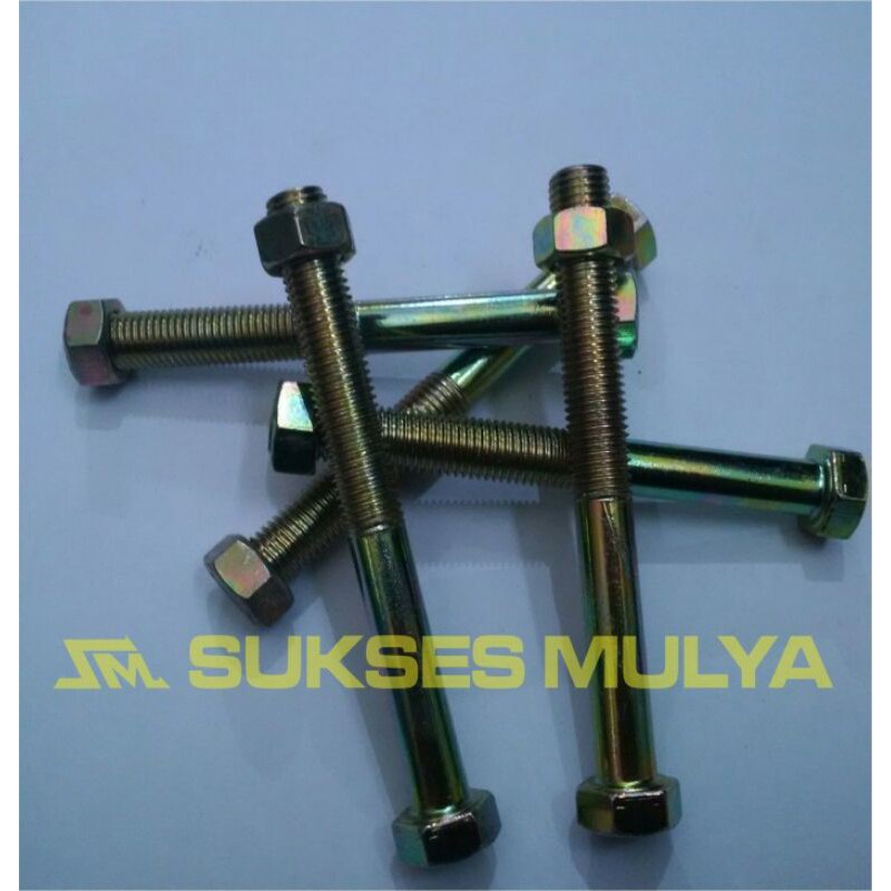 Baut Mur Kuning M10 X 80Diameter: 10mmPanjang: 80mmKunci: 14Drat: 1.25TIDAK FULL DRATFinishing: Galvanis Kuning (YZP)Termasuk MurMerk: TMS/ Moon Lion/ Panaports/ Mega