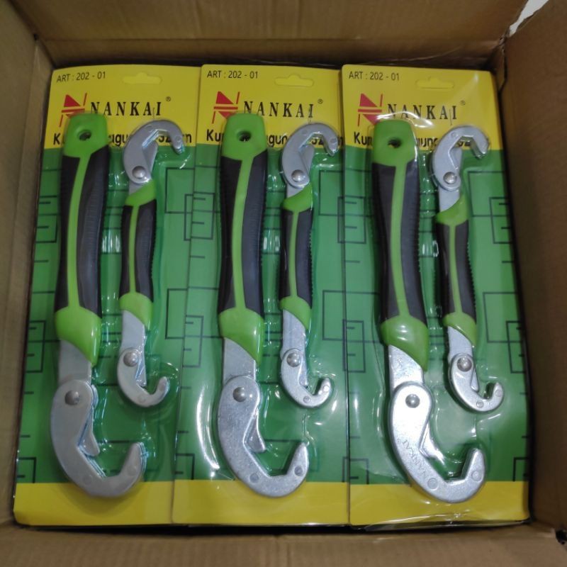 MERK NANKAI SESUAI GAMBARDapat 2 Pcs Kunci Besar dan KecilDeskripsi Kunci Serba Guna / Kunci Pas / Kunci Snap N Grip NankaiSnap N Grip adalah sistem yang inovatif, yang terdiri dari dua kunci pas universal. Dengan dua kunci pas ini,Anda dapat melonggarkan atau mengencangkan semua jenis mur dan baut, terlepas dari ukuran dan bentuknya, seperti kunci pas beradaptasi sendiri. Solusi untuk semua masalah Anda dengan keran, katup, pipa, garis, radiator, boiler, roda, dllSpesifikasi :2 kunci pas universal untuk semua mur dan bautEfisien, praktis dan mudah digunakanSeketika mengurus semua pekerjaanukuran 9