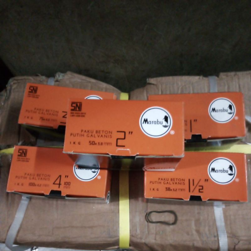 Orderan Paku Beton Marabu - 1” / 1.5” / 2” / 3” / 4” udah sampai hari ini . Belum dibuka & mudah-mudahan cocok sama yang ada di keterangan .